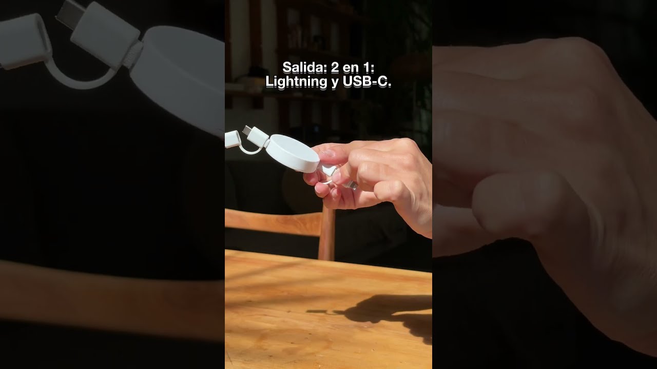 Cable de carga retráctil con longitud de hasta 90 cm. Carga y transferencia de datos de alta velocidad. Carga rápida de 65W. Entrada 2 en 1: USB y USB-C. Salida: 2 en 1: Lightning y USB-C. Diseño con acabado mate